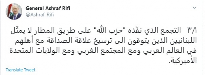 ريفي: تجمعات عناصر حزب الله بطريق المطار لا يمثل لبنان