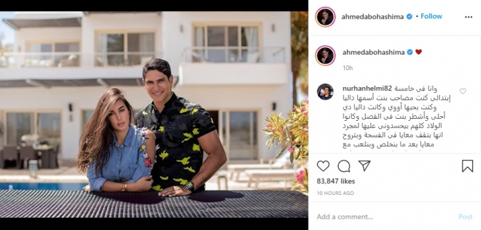 جاء هذا بعد يوم واحد من مشاركة النجمة ياسمين صبرى، أيضًا، صورة جديدة لها مع أحمد أبو هشمية، خلال قضاء عطلتهما الصيفية، عبر حسابها بموقع "إنستجرام"، واكتفت بالتعليق عليها بإيموجي قلب أحمر، وذلك كرد ضمنى على شائعات ترددت على مواقع التواصل الاجتماعى تفيد انفصالهما.