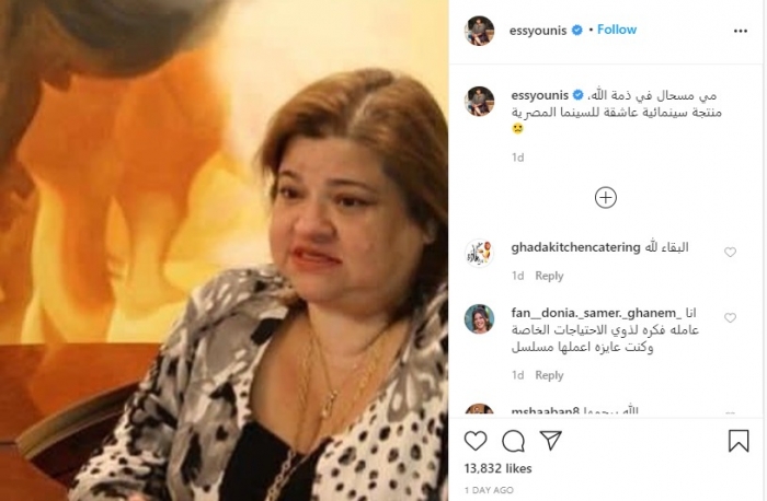 ونشرت إسعاد يونس صورة للراحلة مي، عبر حسابها الرسمي بموقع "إنستجرام"، وعلقت: "مي مسحال في ذمة الله، منتجة سينمائية عاشقة للسينما المصرية".