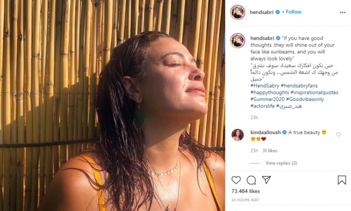 ونشرت هند، صورة لها من إجازتها الصيفية، وعلقت: "حين تكون أفكارك سعيدة، سوف تشرق من وجهك كأشعة الشمس، وتكون دائما جميل".