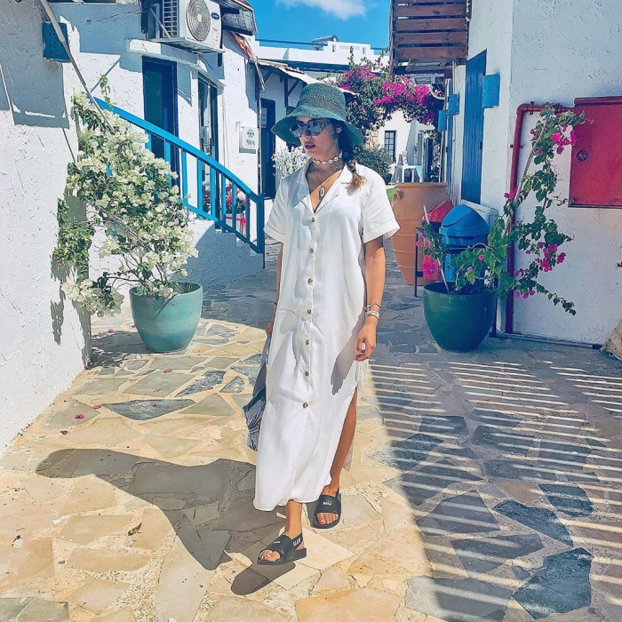 وظهرت ريهام في الصور بإطلالة صيفية، مرتدية فستانًا أبيض و"قبعة"، وحازت الصور على إعجاب متابعيها.