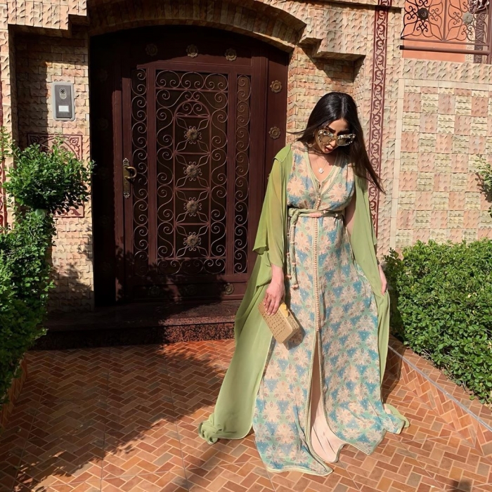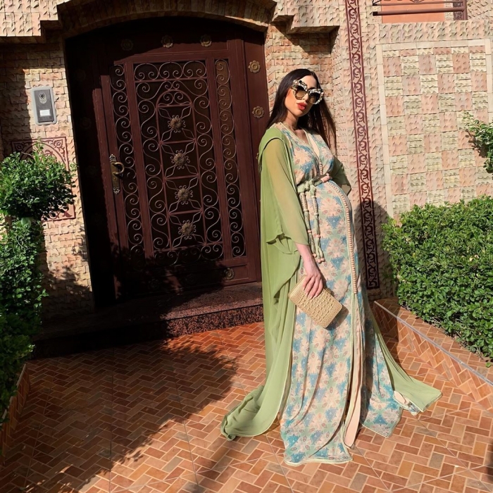 نشرت الفنانة المغربية دنيا بطمة، عبر حسابها الرسمي بـ"إنستجرام"، مجموعة صور لها بإطلالة أنيقة، تظهر فيها خلال أشهر الحمل الأخيرة، ترتدي قفطانًا مغربيًا فضفاضًا.