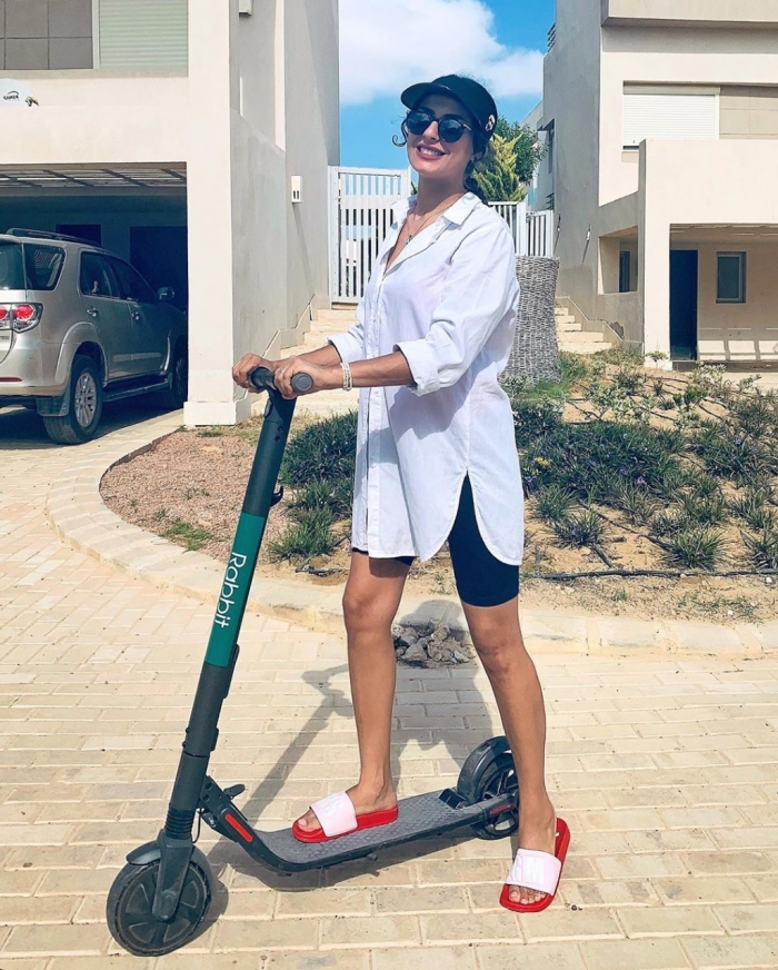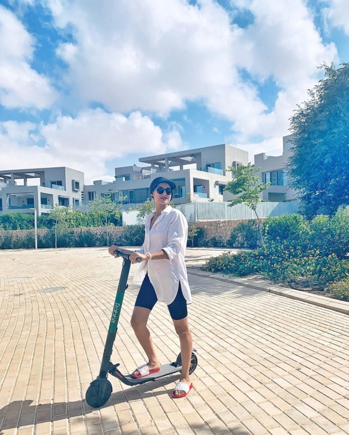 ظهرت ريهام في الصور وهي تتجول في الشارع بـ"سكوتر"، وعلقت: "في بعض الأحيان كل ما تحتاجه هو كسر الروتين والحصول على بعض المتعة".