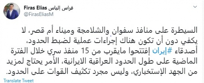 وقال في تغريدة عبر "تويتر" رصدها "المشهد العربي": "السيطرة على منافذ سفوان والشلامجة وميناء أم قصر، لا يكفي دون أن تكون هناك إجراءات عملية لضبط الحدود".