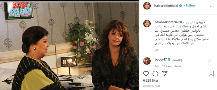 نشرت الفنانة هالة صدقي، عبر حسابها الرسمي بموقع إنستجرام، صورة تجمعها بالنجمة الراحلة رجاء الجداوي.
