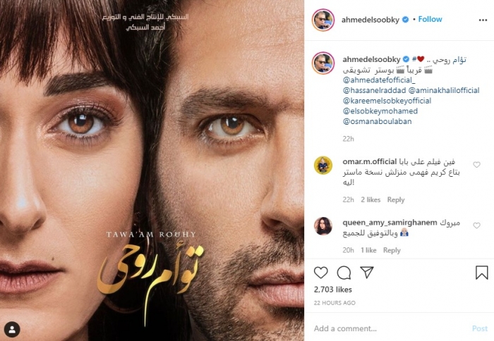 نشر المنتج أحمد السبكي، البوستر التشويقي لفيلم "توأم روحي"، بطولة حسن الرداد، والذي من المقرر طرحه قريبا في دور العرض السينمائي.