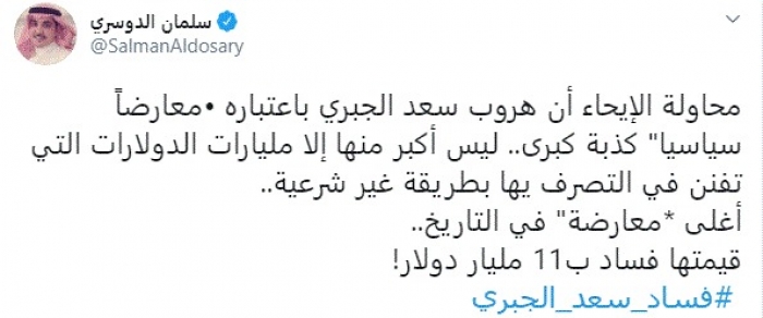 الدوسري: سعد الجبري ليس معارضًا سياسيًا.. والإيحاء بذلك كذبة كبرى