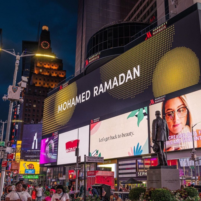 نشر الفنان محمد رمضان مجموعة من صوره، المعلقة في ساحة تايمز سكوير بمانهاتن في نيويورك الولايات المتحدة الأمريكية، عبر حسابه الرسمي بموقع "إنستجرام".