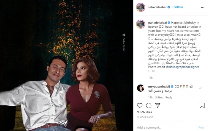 ونشرت "السباعي" صورة مركبة تجمعهما، عبر حسابها الرسمي بموقع "إنستجرام"، وعلقت: "عيد ميلاد سعيد في الجنة، مسمتعش صوتك من سنين، وحشتني".