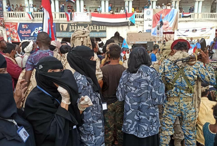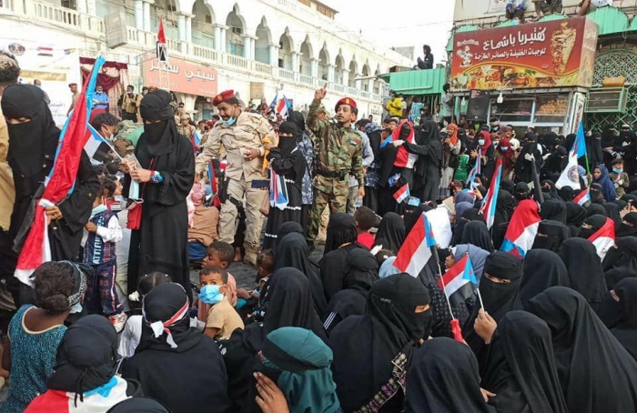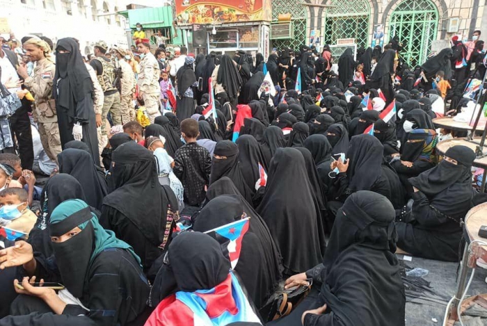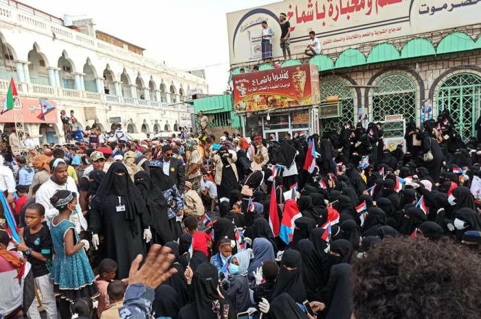 شاركت أعداد غفيرة من السيدات، اليوم السبت، في مليوينة "المجلس الانتقالي يمثلنا.. واتفاق الرياض مطلبنا" بمدينة المكلا.