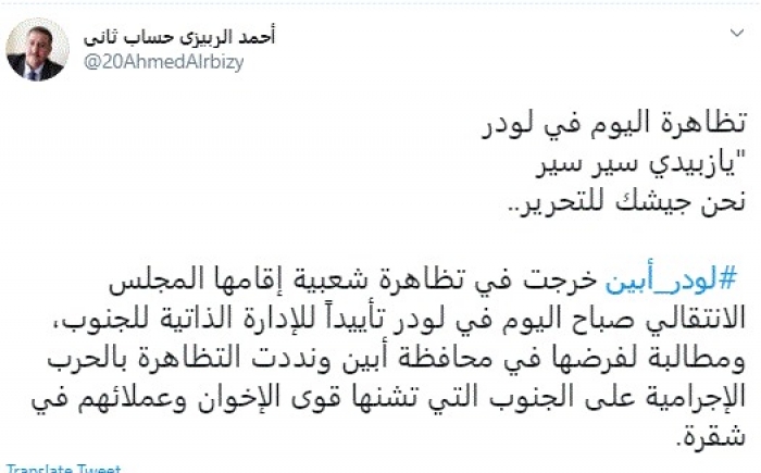 الربيزي يُعلق على مسيرة تأييد الانتقالي في لودر بأبين