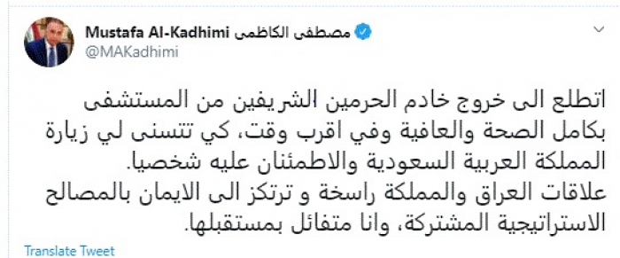 وكتب في تغريدة عبر "تويتر" رصدها "المشهد العربي": "اتطلع الى خروج خادم الحرمين الشريفين من المستشفى بكامل الصحة والعافية وفي أقرب وقت، كي تتسنى لي زيارة المملكة العربية السعودية والاطمئنان عليه شخصيا".