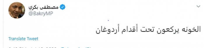 بكري مُهاجمًا حكومة الوفاق: الخونة يركعون تحت أقدام أردوغان
