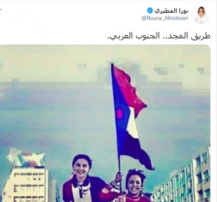 وكتبت عبر تغريدة لها على "تويتر" رصدها " المشهد العربي":" طريق المجد.. الجنوب العربي".
