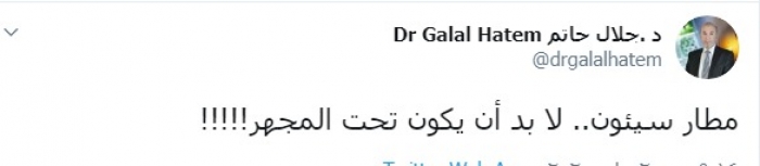 وكتب عبر تغريدة له على "تويتر" رصدها " المشهد العربي": "مطار سيئون، لا بد أن يكون تحت المجهر".