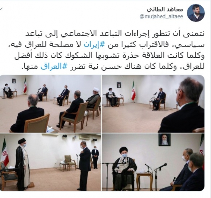وكتب عبر تغريدة له على "تويتر" رصدها " المشهد العربي": "نتمنى أن تتطور إجراءات التباعد الاجتماعي إلى تباعد سياسي، فالاقتراب كثيرا من إيران لا مصلحة للعراق فيه، وكلما كانت العلاقة حذرة تشوبها الشكوك كان ذلك أفضل للعراق، وكلما كان هناك حسن نية تضرر العراق منها.