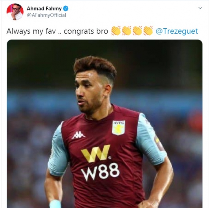 هنأ الفنان أحمد فهمي، اللاعب المصري محمود حسن تريزيجيه، بعد فوز فريقه "أستون فيلا" على فريق "أرسنال"، بهدف أحرزه اللاعب المصري.