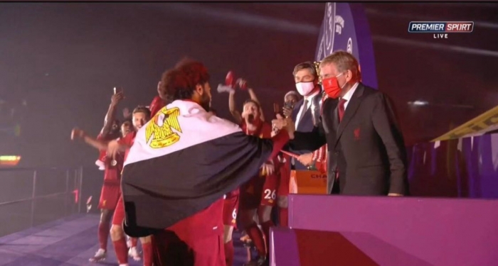 ووضع صلاح علم مصر على كتفيه أثناء تسلمه الميدالية الخاصة به، وأثناء الاحتفال ورفع كأس الدوري الإنجليزي.