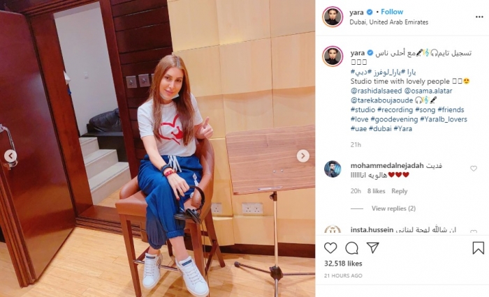 كشفت الفنانة اللبنانية يارا، عن صور لها داخل أحد استوديوهات دبي، استعدادا لتسجيل أغنية جديدة.