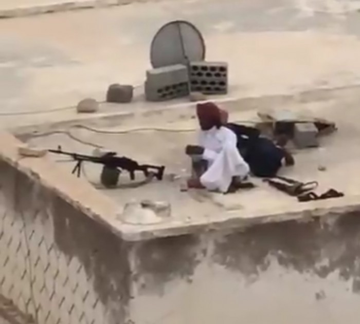 نشر الإعلامي صلاح بن لغبر، اليوم الجمعة، مقطعا مصورا لأحد القناصة من جيش الاحتلال على سطح منزل في المهرة وذلك في محاولة لإرهاب المواطنين ومنعهم من حضور فعاليات الغد.