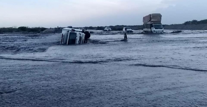تسببت السيول المتدفقة بغزارة على محافظة أبين، في قطع الخط الدولي بين "عدن وأبين".