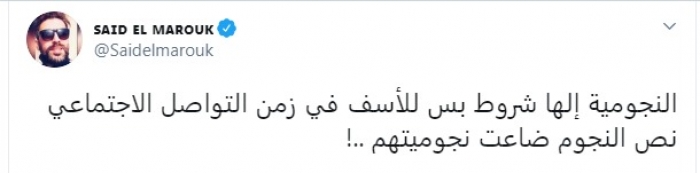 وكتب الماروق، عبر حسابه الرسمي بموقع تويتر: "النجومية لها شروط بس للأسف في زمن التواصل الإجتماعي.. نص النجوم ضاعت نجوميتهم".