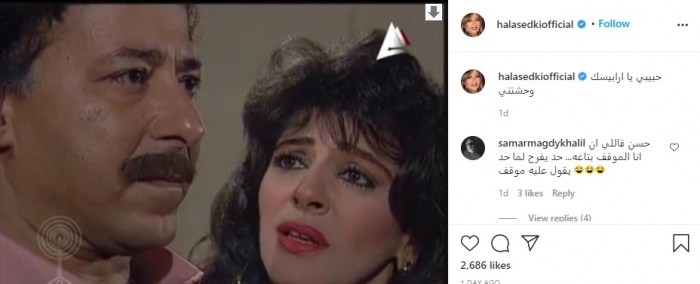 ونشرت هالة صورة تجمعهما من مسلسل "أرابيسك"، الذي حقق شهرة كبيرة في وقت عرضه، عبر حسابها الرسمي بموقع "إنستجرام"، وعلقت :"حبيبي يا أرابيسك وحشتني".