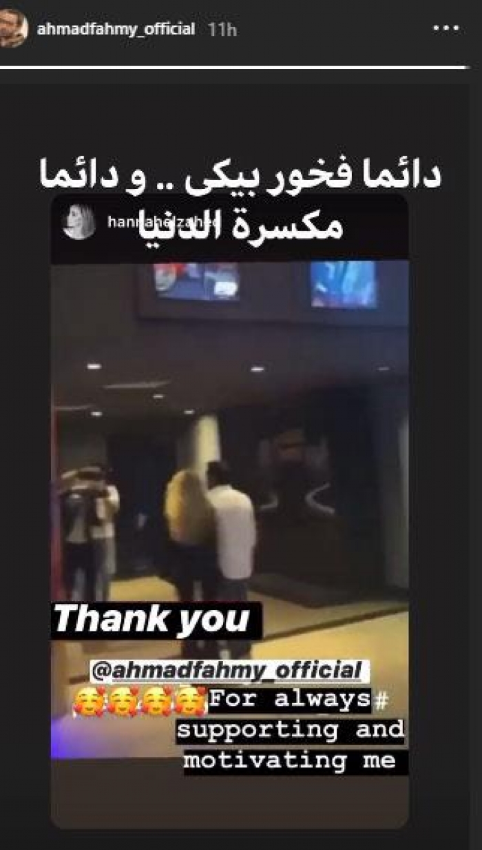 ليرد "فهمي" عبر خاصية الاستوري بحسابه الرسمي بموقع إنستجرام: "دائما فخور بيكي، ودائما مكسرة الدنيا".