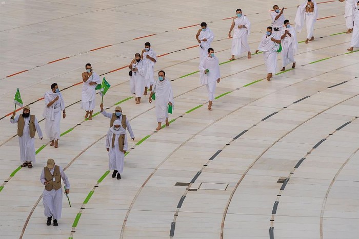 وجهزت الرئاسة العامة لشؤون المسجد الحرام والمسجد النبوي صحن المطاف والممرات ومداخل الأبواب ومرافق المسجد الحرام بوضع مسارات افتراضية بالملصقات الأرضية المؤقتة التي تهدف إلى تنظيم مسارات دخول حجاج بيت الله الحرام وأداء مناسكهم لتضمن من خلالها تطبيق التباعد المكاني بين الحجيج، وذلك بالتنسيق والتعاون مع وزارة الحج والعمرة والقيادات الأمنية.