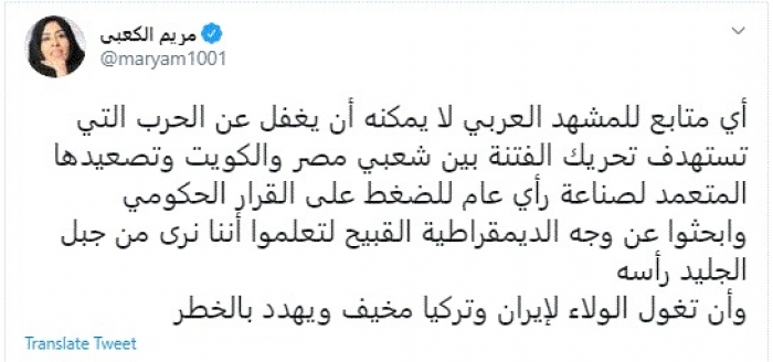 الكعبي تكشف المخطط الخطير لإشعال الفتنة بين مصر والكويت