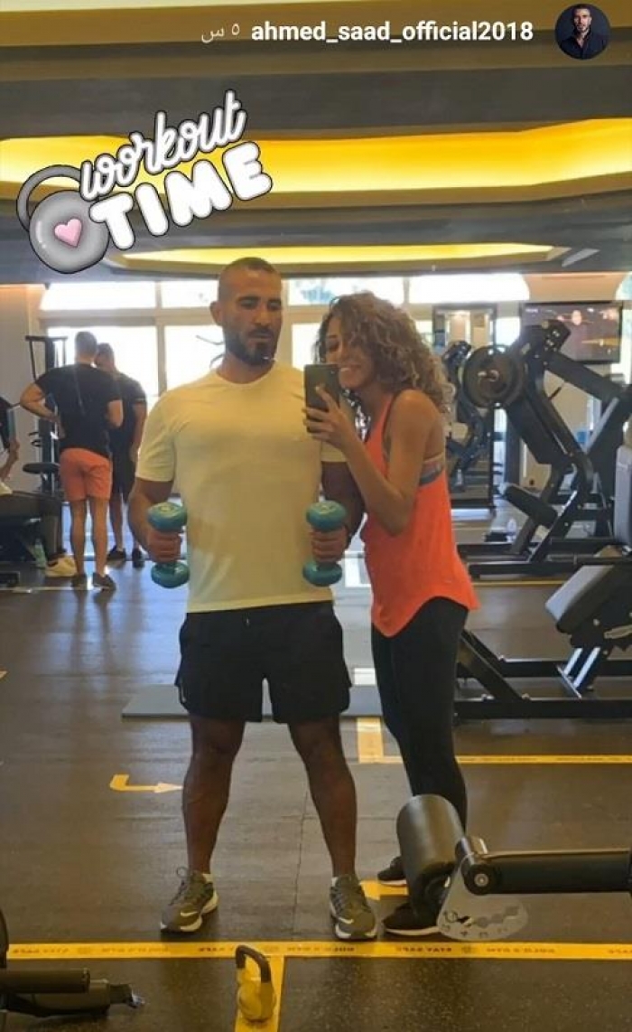من داخل الجيم..أحمد سعد برفقة خطيبته علياء بسيوني (صورة)