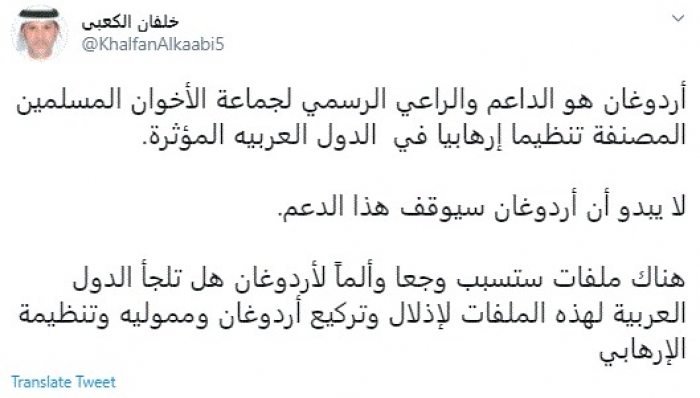 الكعبي يتساءل: هل ستلجأ الدول العربية لتركيع أردوغان بعد دعمه للإخوان؟