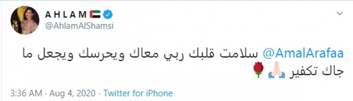 وكتبت أحلام: "أمل عرفة، سلامة قلبك ربي معك ويحرسك، ويجعل ما جاك تكفير".