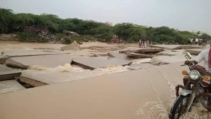 مخاوف من انهيار جسر دفيقة بسبب سيول الشحر (صور)