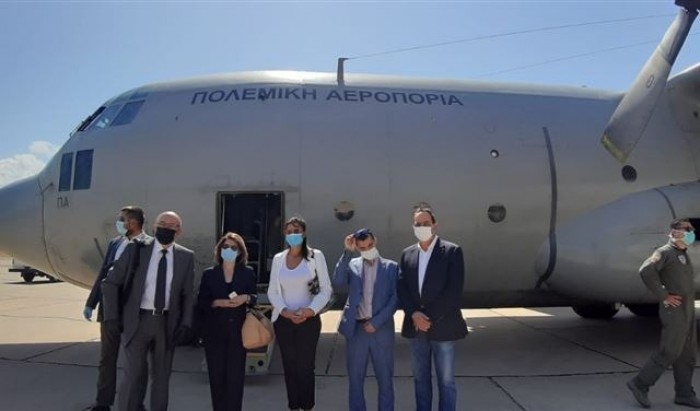 طائرة مساعدات يونانية تصل إلى القاعدة الجوية في مطار لبنان