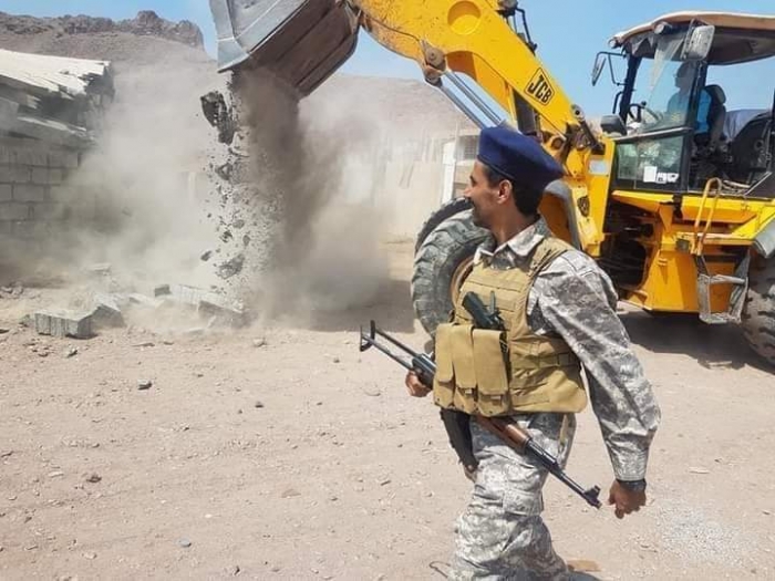 شنت الأجهزة الأمنية في مديرية البريقة بالعاصمة عدن، حملة ضد العقارات المخالفة والبناء العشوائي بالمديرية.