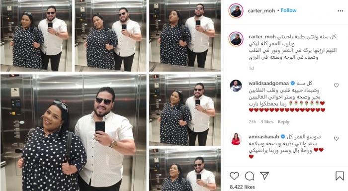ونشر "كارتر" صور "سيلفي" مجمعة لهما، وعلق: "كل سنة وإنتِ طيبة يا حبيبتي، ويارب العمر كله ليكي، اللهم ارزقنا بركة في العمر ونور في القلب وضياء في الوجه وسعة في الرزق".