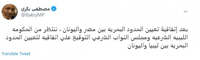 بعد اتفاقية مصر واليونان.. بكري يُوجه طلبًا عاجلاً لـ النواب الليبي