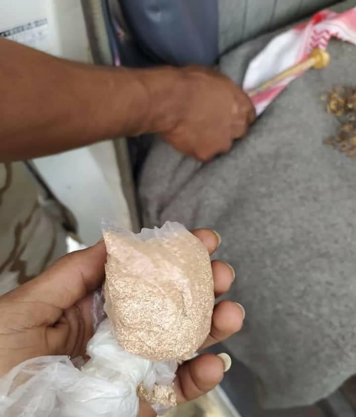 عثرت بحوزة الأجنبي أثناء أعمال التفتيش على كمية من الذهب المسروق وقنبلة هجومية ومبالغ مالية.