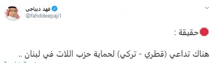 وكتب في تغريدة عبر "تويتر" رصدها "المشهد العربي": "هناك تداعي (قطري - تركي) لحماية حزب اللات في لبنان".