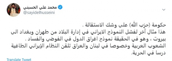 الحسيني: حكومة لبنان على وشك الاستقالة.. وإيران تلقت درسًا قاسيًا
