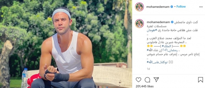 وكتب "إمام"، عبر حسابه بموقع "إنستجرام": "كنت ناوي معملش مسلسلات لفترة قلت مش هلاقي حاجة جامدة زي هوجان، لحد ما المؤلف محمد صلاح العزب والمخرجة شيرين عادل فاجئوني".