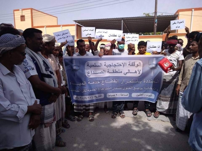 احتشد أبناء منطقة الصداع بمديرية غيل باوزير، في محافظة حضرموت، في وقفة سلمية أمام مؤسسة المياه بالمديرية، احتجاجًا على الانقطاعات المستمرة للمياه في المنطقة.