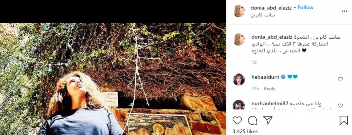 وعلقت دنيا على الصورة :"سانت كاترين، الشجرة المباركة، عمرها 3 آلاف سنة، الوادي المقدس، بلدي الحلوة".