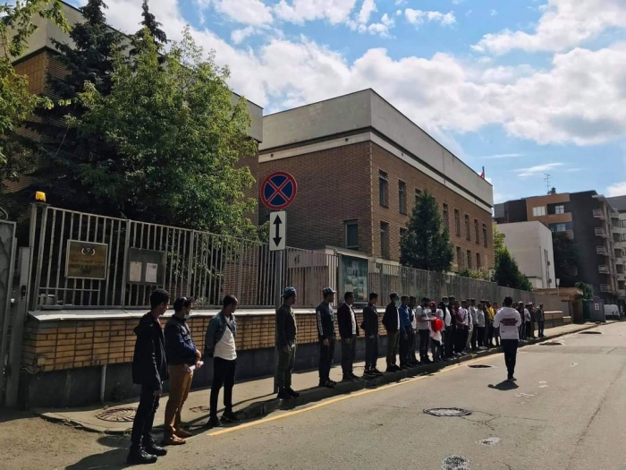 واصل، اليوم الخميس، الطلاب اليمنيين المبتعثين في روسيا، احتشادهم أمام سفارتهم، لليوم الثاني على التوالي، للمطالبة بصرف مستحقاتهم.