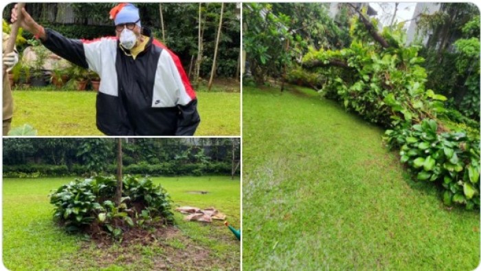 ظهر أميتاب في حديقة منزله مرتديا الكمامة، لافتا أنه يزرع شجرة جولموهار الضخمة، مضيفا "زرعت شجرة جولموهار الضخمة عام 1973، وأسقطتها العاصفة الأخيرة، في 12 أغسطس بعيد ميلاد والدتي، قمت بإعادة زراعة جولموهار جديدة، في نفس المكان باسمها".
