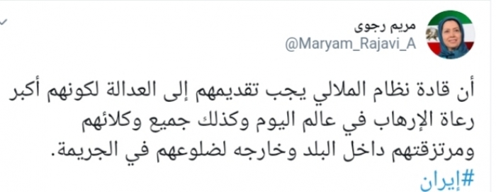 رجوي تطالب بمحاكمة نظام الملالي لكونهم أكبر رعاة للإرهاب بالعالم