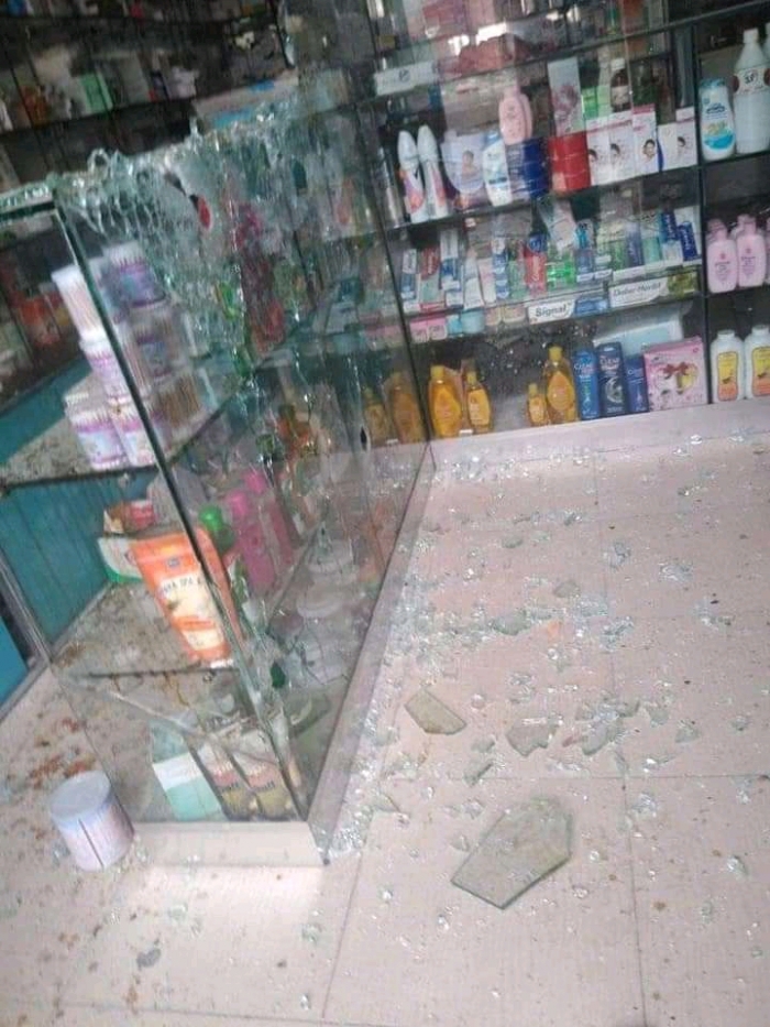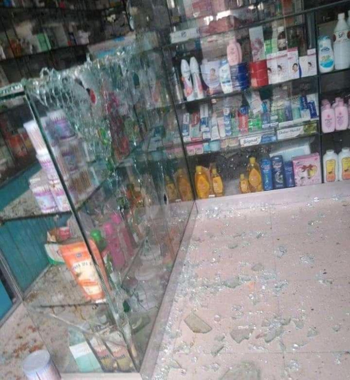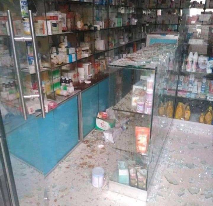 رغم حملة الإخوان المزعومة.. مسلحون يهاجمون صيدلية بتعز (صور)