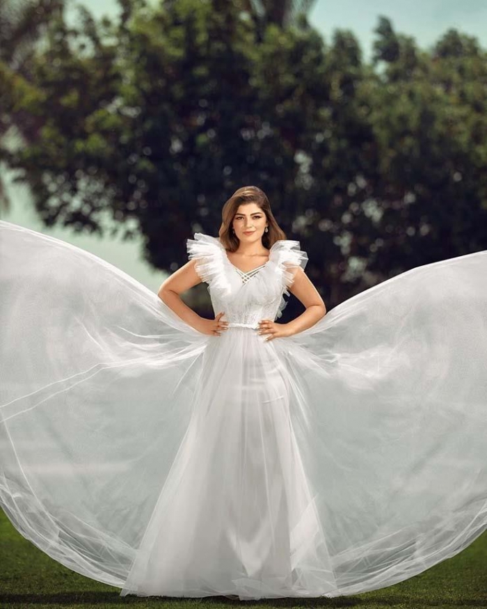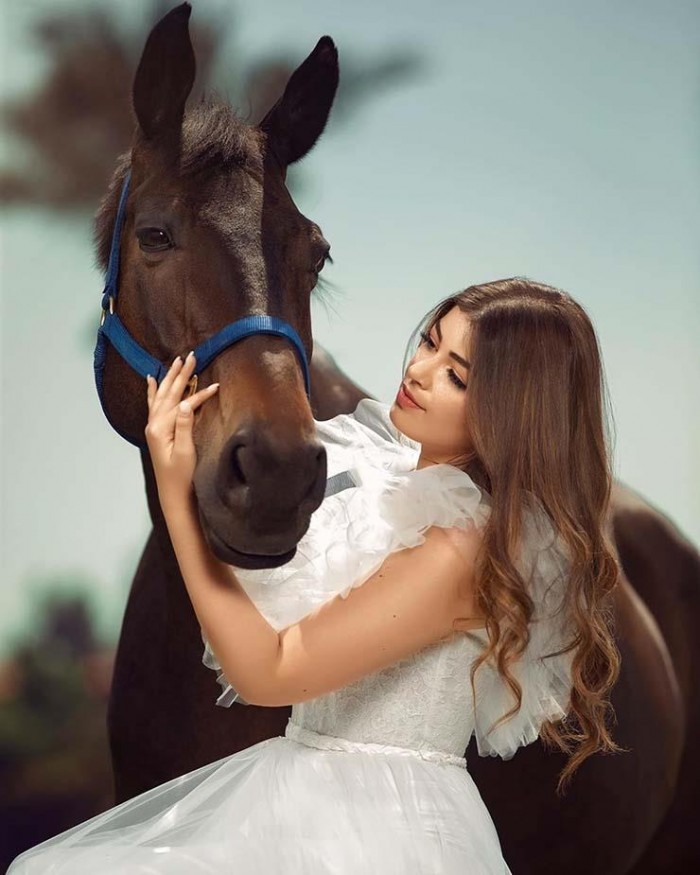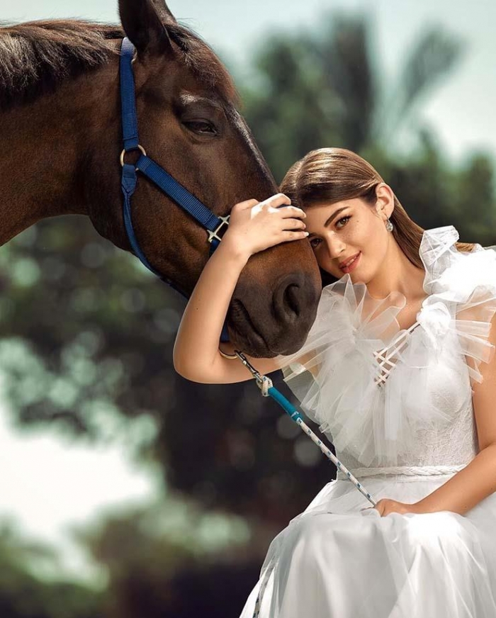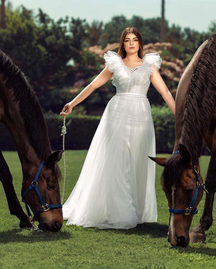 وظهرت خلالها ترتدى فستانا أبيض وهي تحتضن حصان، مثل أميرات ديزني، وعلقت عليها عبر حسابها بموقع "إنستجرام": "جلسة تصوير جديدة وتجربة جديدة".