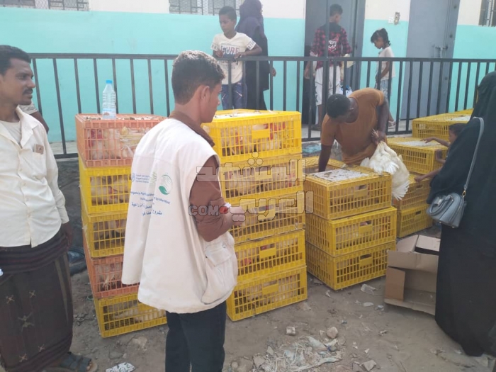 وزعت منظمة الأغذية والزراعة بالأمم المتحدة، فاو، مستلزمات مشروع مدخل الدواجن في مدينة خنفر، صباح اليوم الثلاثاء، على 650 أسرة.